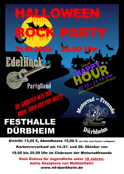 auf den Internetseiten der Motorradfreunde Dürbheim. Auf diesen Seiten versuchen wir einen Überblick von unserem Club sowie von unseren Aktivitäten zu vermitteln. Was 1990 als loser Zusammenschluss einiger motorradbegeisterten Freunden begann, führte 1996 zur Gründung der Motorrad-Freunde Dürbheim als eingetragener Verein. Derzeit umfasst der Verein über 30 Mitglieder der unterschiedlichsten Altersgruppen.